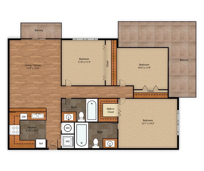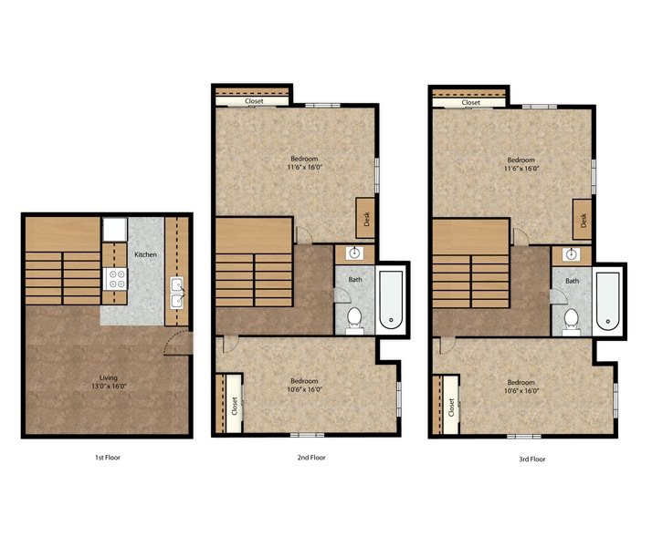 | 3 Bedroom 2 Bathroom || | 3 | 2 | 1,300 | $1,239 /MO | $350 | ||